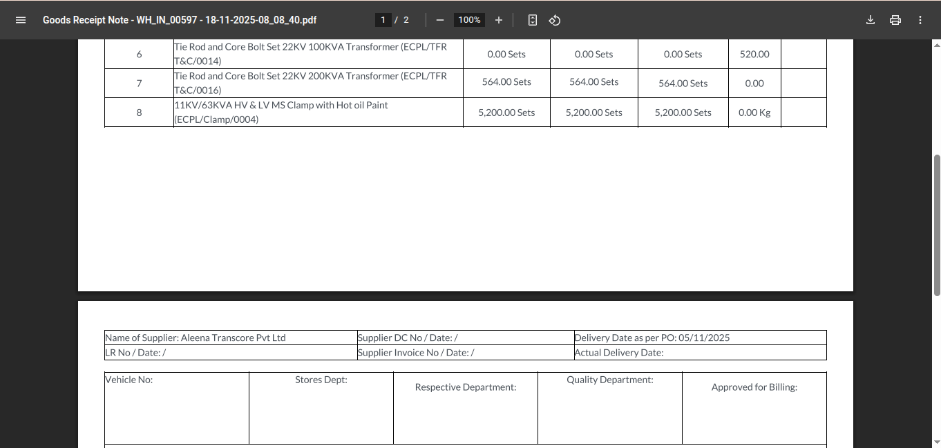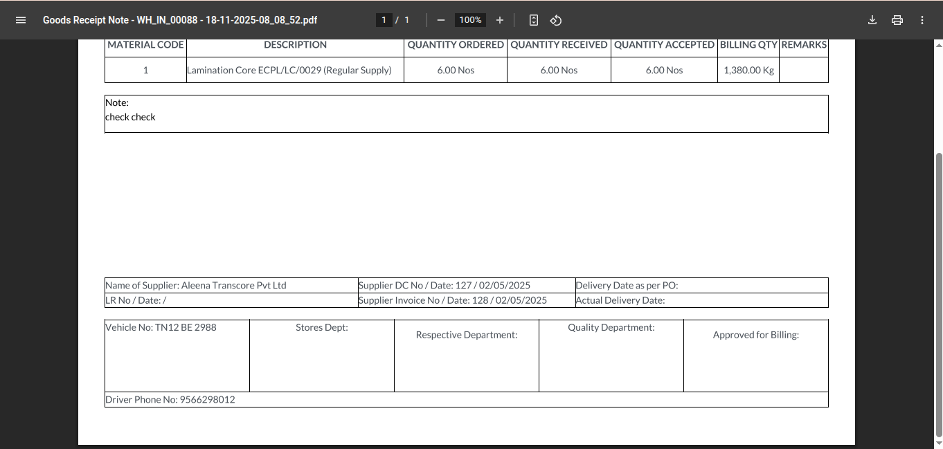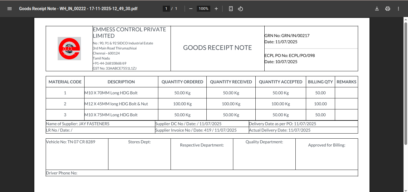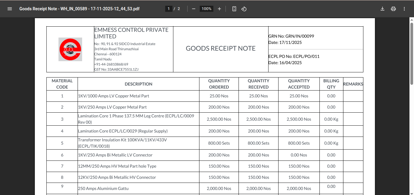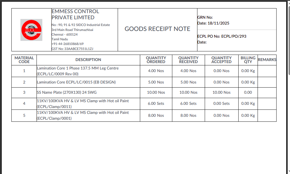 GRN Report Format was tested at https://testing.emmess.amachu.tech/
