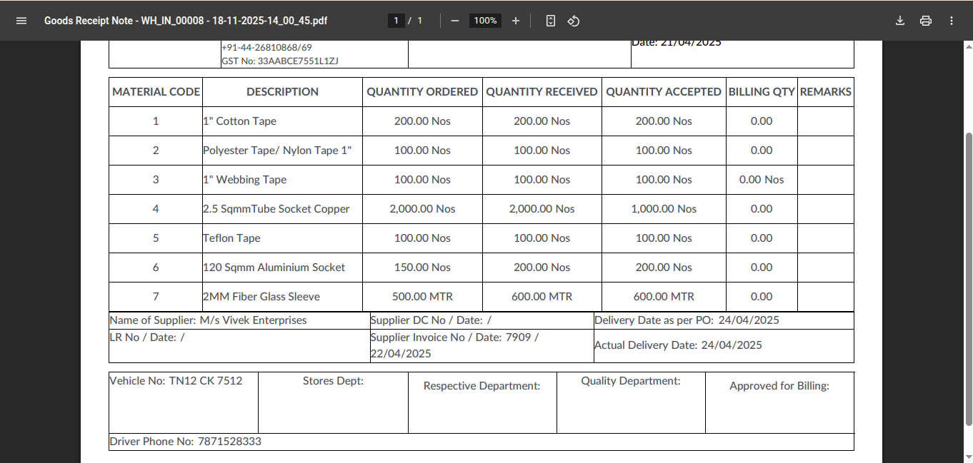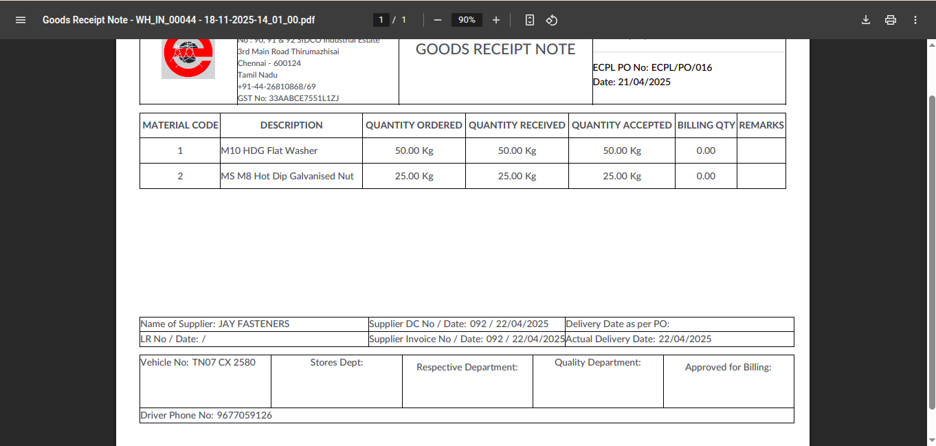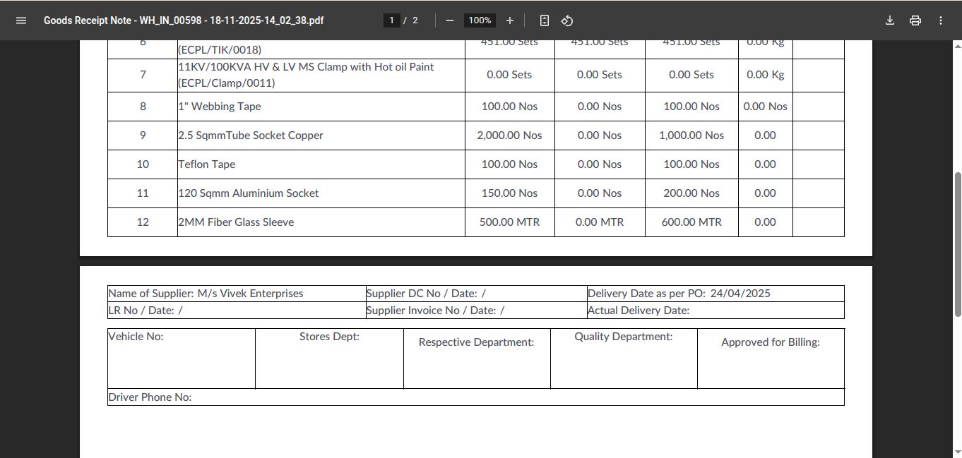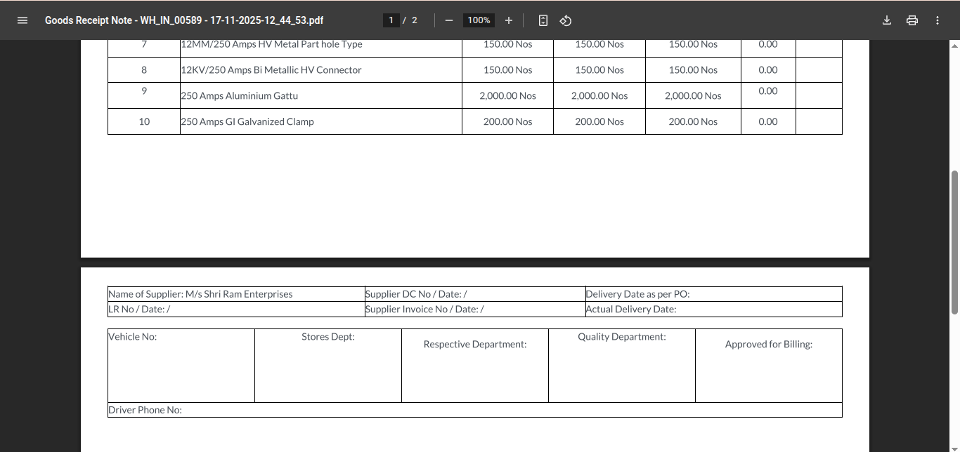GRN Report Format was tested at https://testing.emmess.amachu.tech/