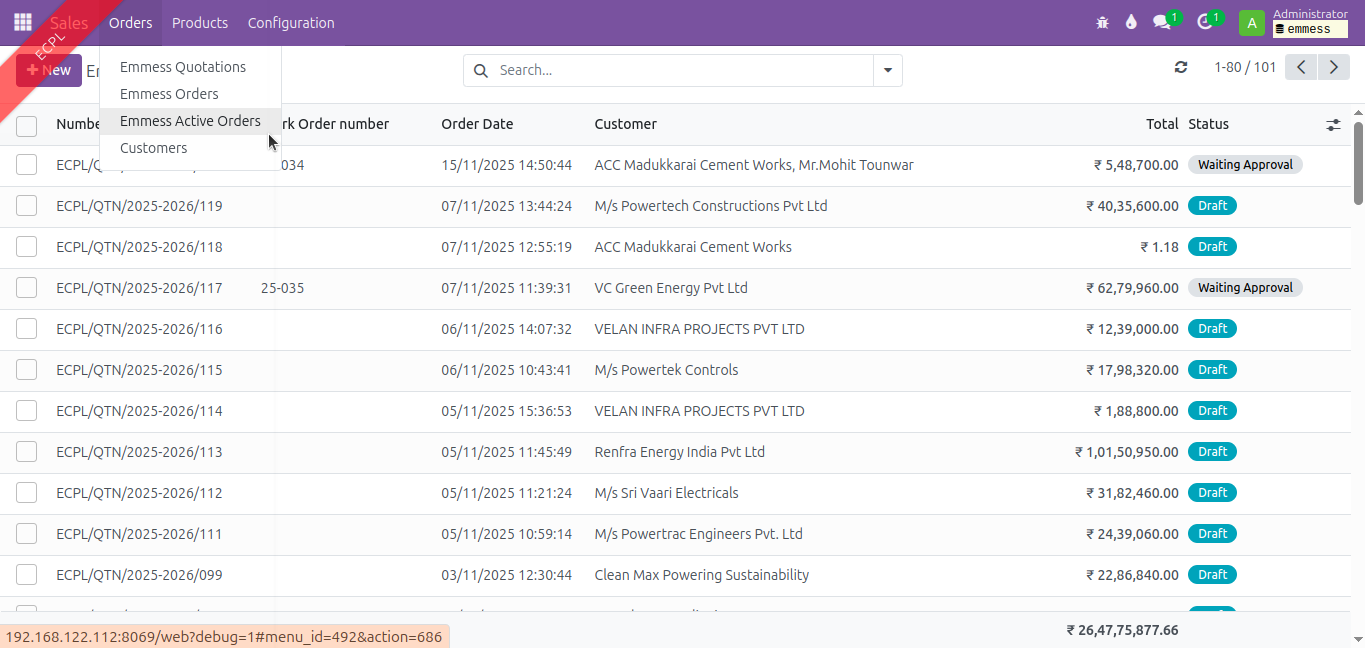 Report on sales offer to order conversion for Quotation (Draft, Waiting Approval, Approved state) and Order(Order Confirmed, Amended Sale Order state)
