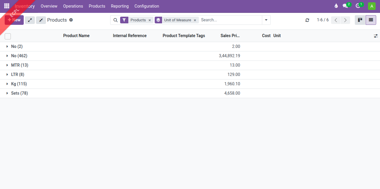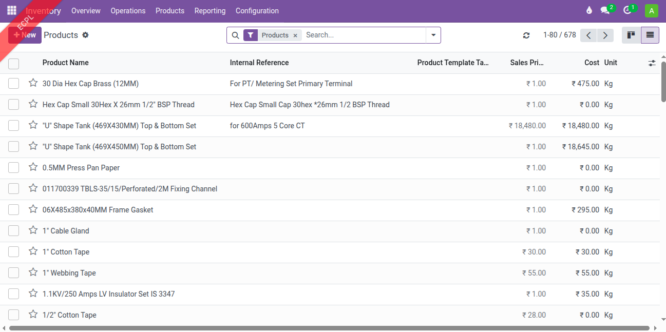 Menu Path: Inventory --> Products --> Products